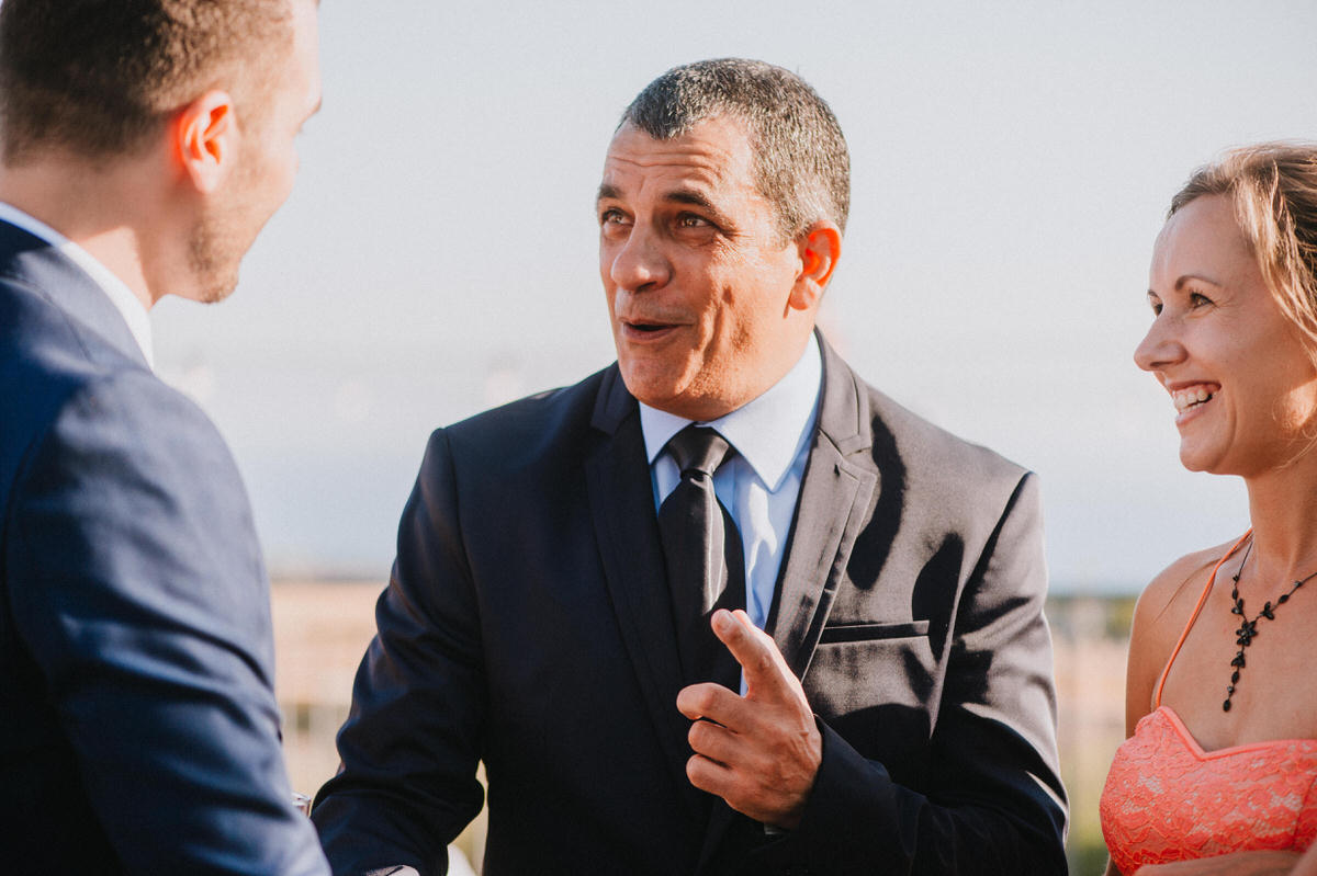 Time for the wedding breakfast! This was set up in the round courtyard over looking the sea. The set up was simple and stylish, with simple china and crystal glasses. Centerpieces of roses, hydrangea, and foliage with sat on each table. Marco and Anastassia’s wedding cake was three tiered with elegant scroll accents. The food served was really tasty and everyone seemed to enjoy it all. In addition to the meal were speeches and cake cutting. While the guests finished their desserts we took the couple off for a sunset shoot in and around the venue and as a result capture some stunning shots.